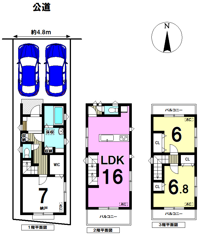 幅員約7.2mの北側前面道路です。