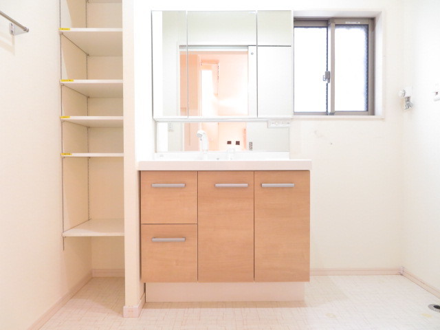 洗面台の下は、引き出し式収納もあるので、タオルのストックやお化粧品も収納できます。