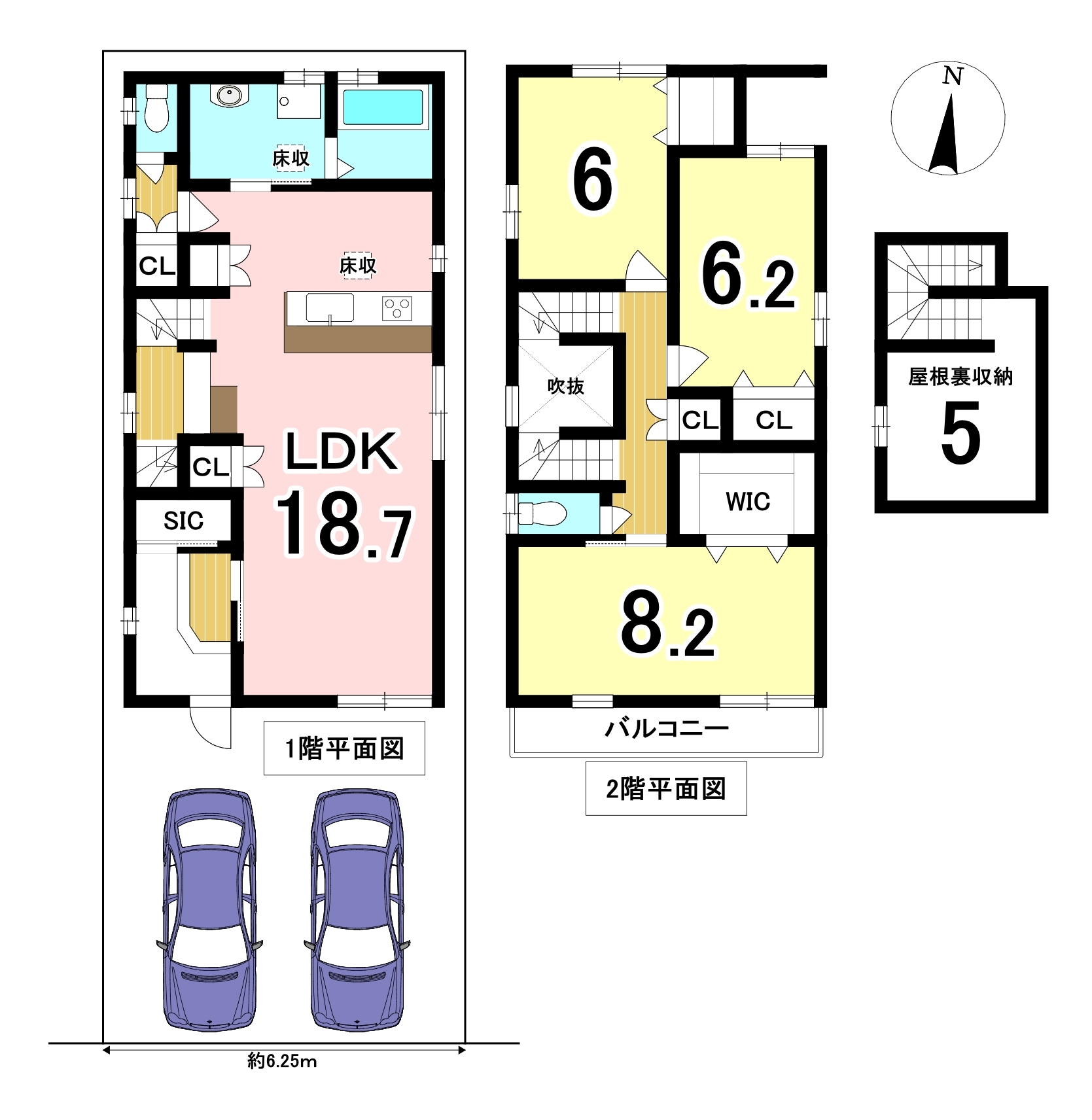 18.7帖広々LDKに収納、キッチンパントリー、玄関SIC、WIC付きの8.2帖洋室、洗面所収納、廊下収納、屋根裏収納と!