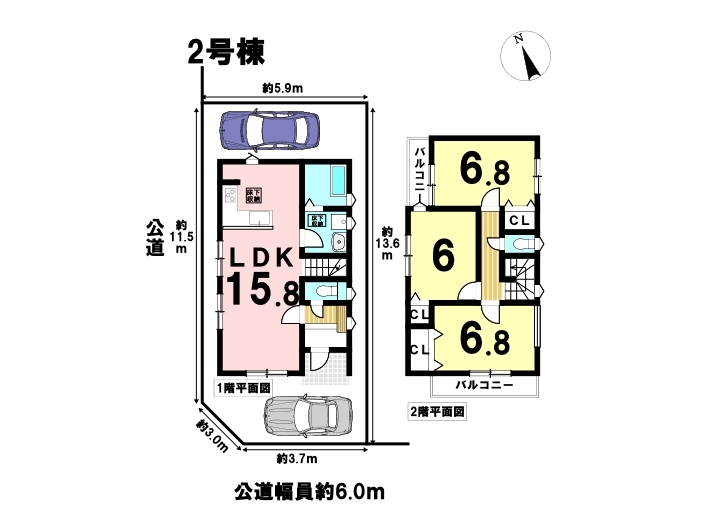 2号棟・3号棟ともに2台分の駐車スペースがあります(*^^*)