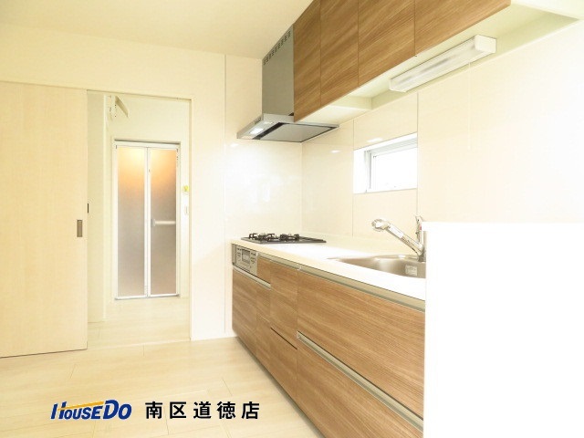 キッチンから直接洗面室にも出入りできる、家事動線を考えたプラン。
