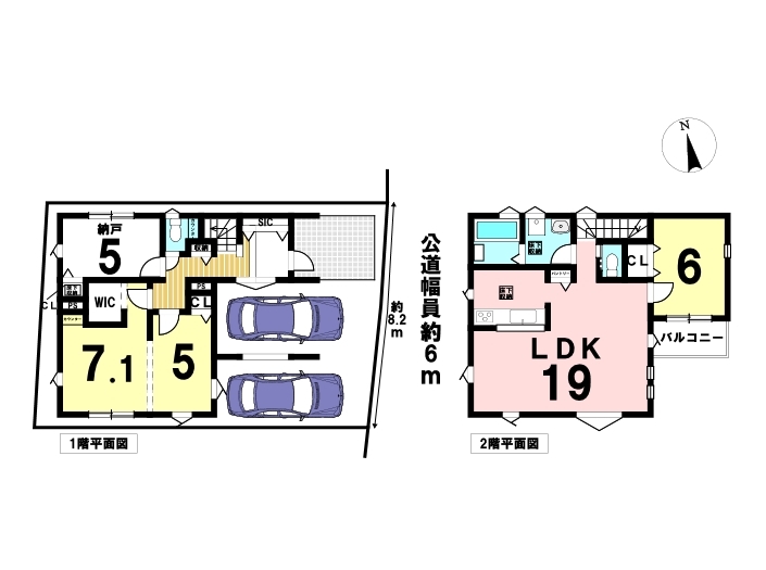 3LDK+納戸の間取り、駐車はゆったり2台可能。
