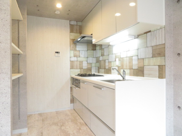 リビングの壁紙とマッチしたおしゃれな空間で、お料理がはかどりそうですね♪