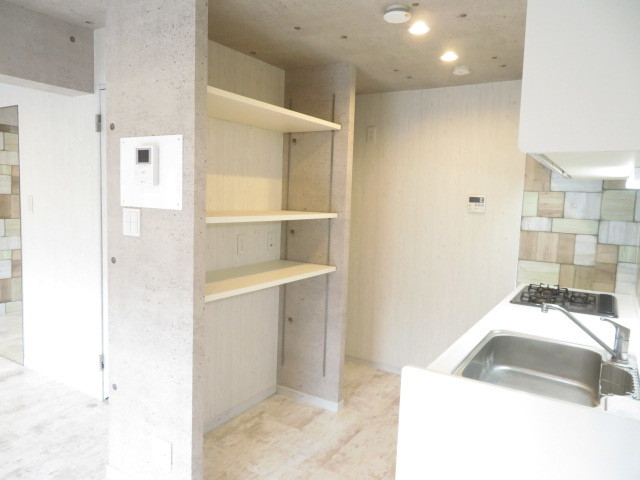 キッチン後ろには可動式の収納棚*食器や食品の保管に・・・◎