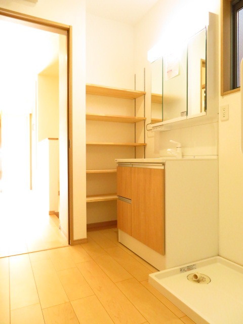 水まわりは2階に配置されています。洗面台横の可動棚が魅力です♪