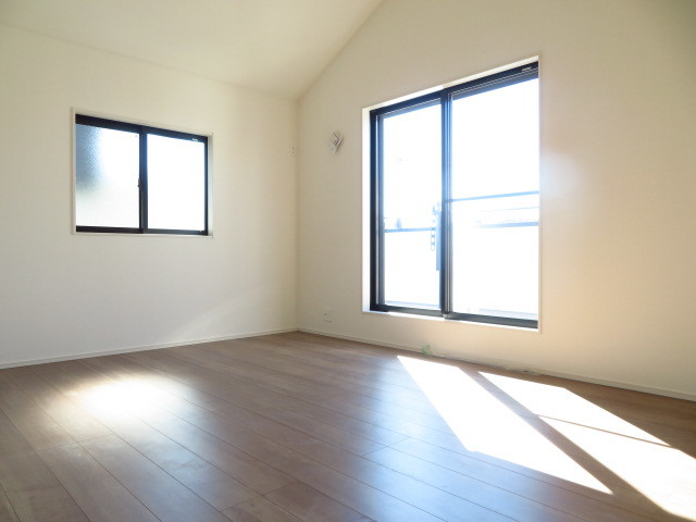 7.8帖洋室:勾配天井で開放感があり、陽射しもたっぷりと入り込む、明るい洋室です。