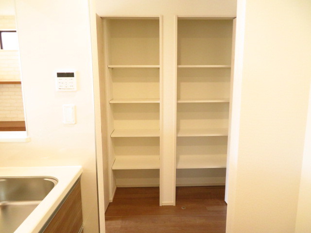 キッチン横には収納スペースがあり、ストック品などたくさん収納可能◎