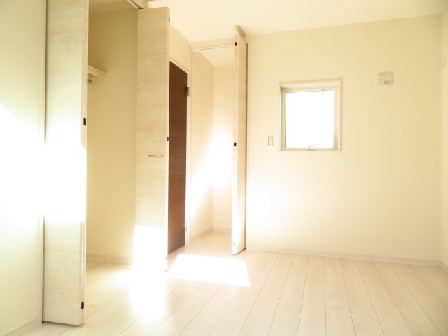 東側5.2帖洋室:ハンガーパイプ付きのクローゼットと、北面の小窓の横にも収納が完備されています。