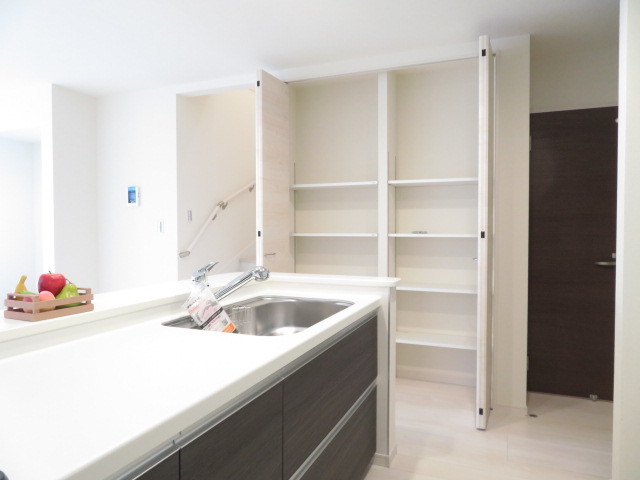キッチン横には収納スペースがあり、ストック品などたくさん収納可能◎