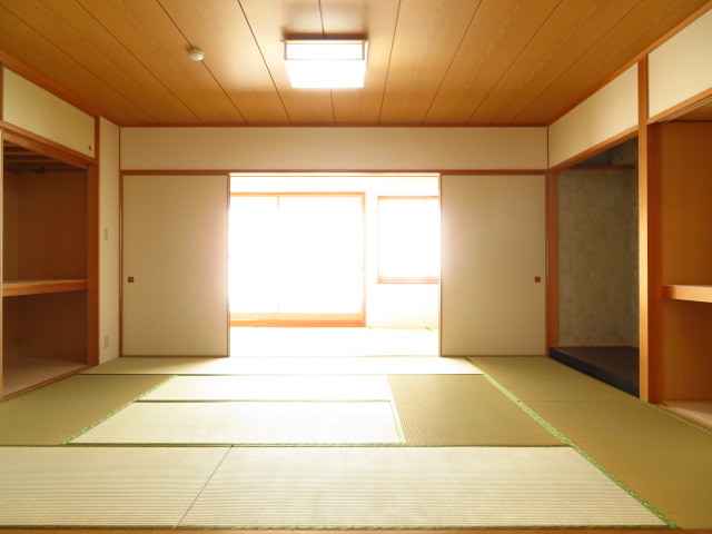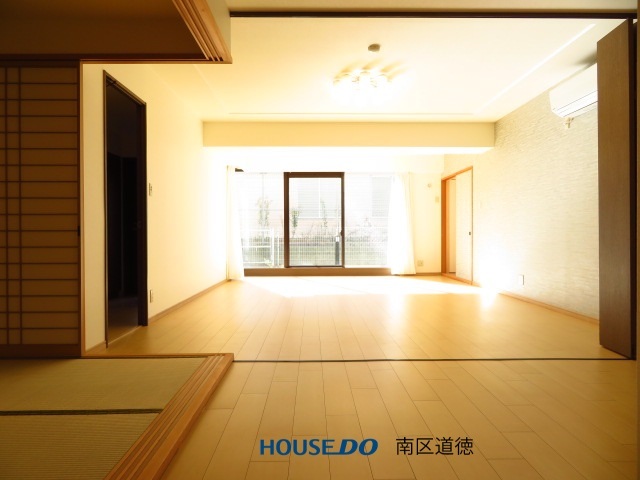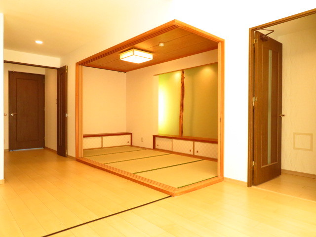 ダイニングキッチンと繋がりがある和室です。間仕切りを開放すれば、計18.5帖のおもてなし空間に♪