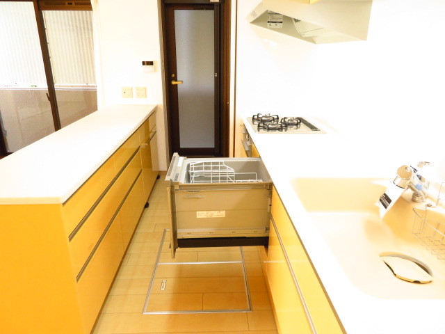 勝手口と窓から外へ出ることができ、バルコニーへ抜けることができます。