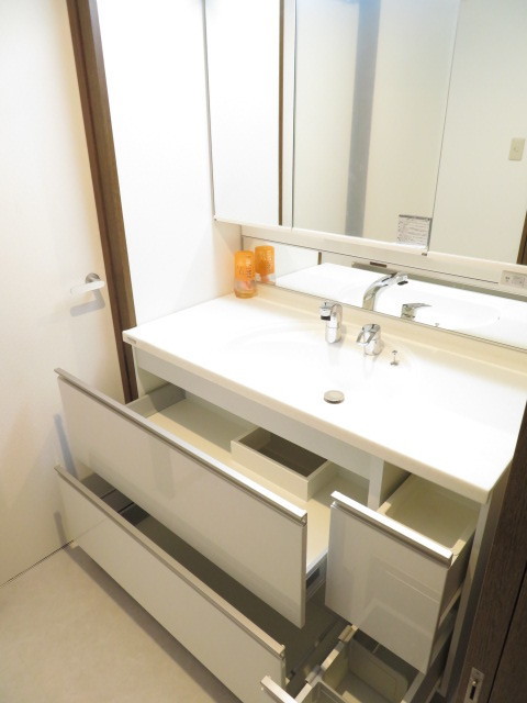 収納棚が完備され、タオルや衣類なども収納ができます。
