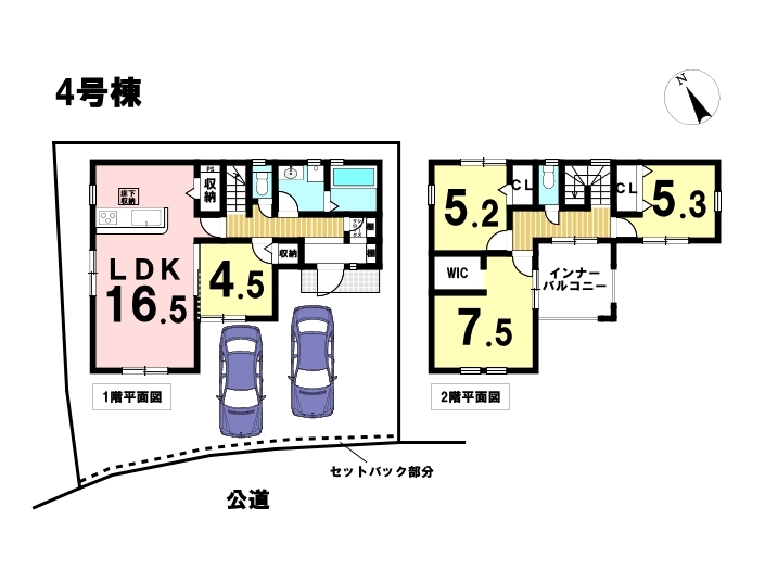 4LDKの間取り、駐車はゆったり2台可能です。