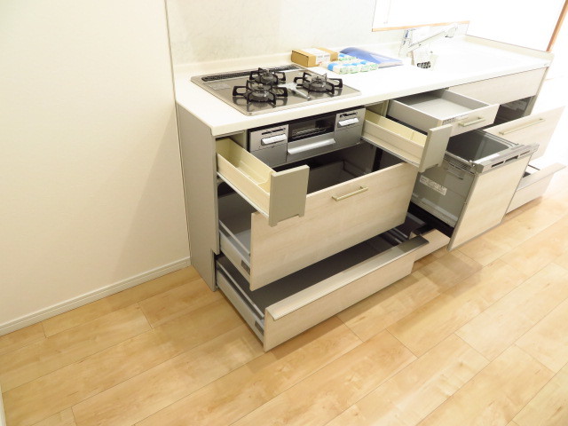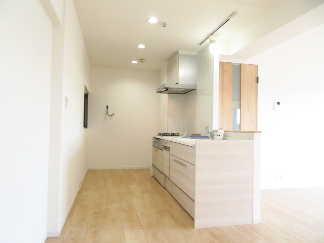 ガスコンロの横に、冷蔵庫を置くスペースがあります。