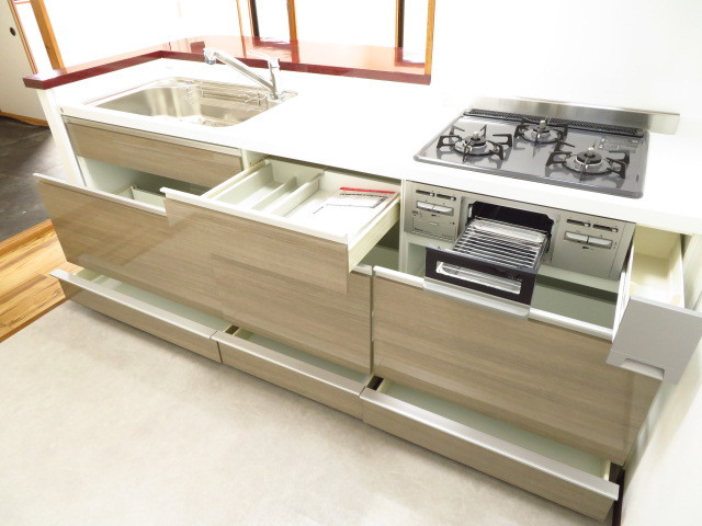 カウンターキッチンからリビングと和室が見渡せるので、小さなお子様の様子を見ながら料理ができます♪