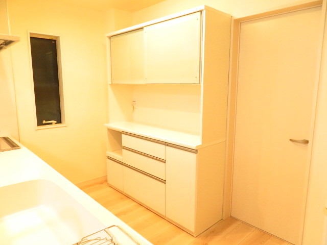 扉の右側には、冷蔵庫を置くスペースがあります。