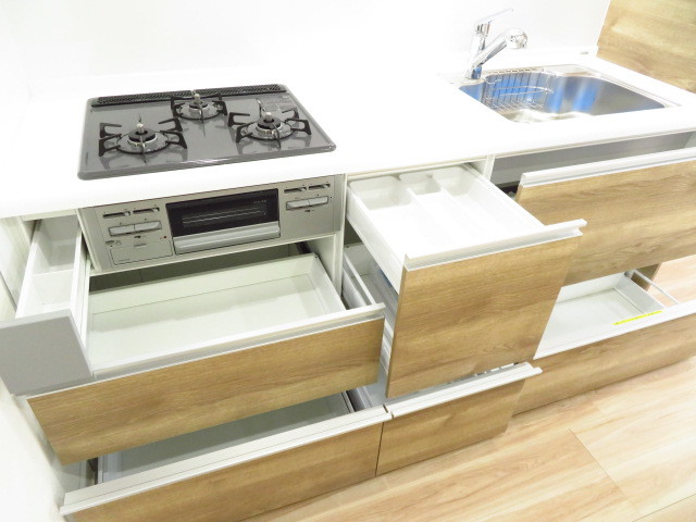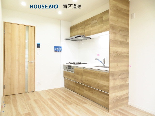 美しい木目のシステムキッチン♪広々とした空間の中、親子でお料理が楽しめます。