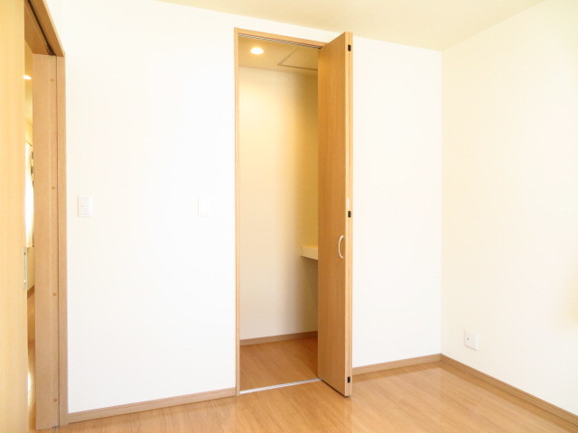 WIC付き6帖洋室:左側にはハンガーパイプ付きの収納、右側には奥行きがある2段に分かれた収納となっています。衣装ケースを置いたり、布団や季節ものの保管など、使い勝手の良いスペースとなっています。