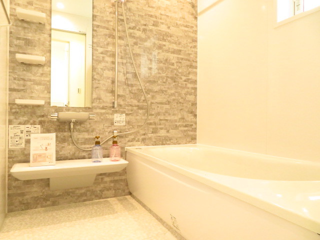 オシャレな壁色の浴室♪日々の疲れも癒されそうです♪