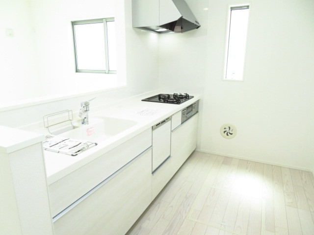 キッチンも白色で、爽やかな空間♪キッチン横の窓を開けてちょっと一息(^^)優しい風が入ってきます。