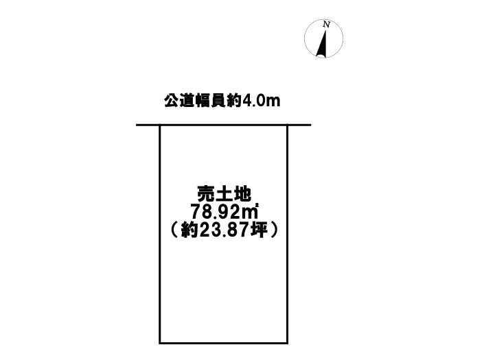 幅員約4mの北側前面道路です。普通車が1台通れる幅となります。