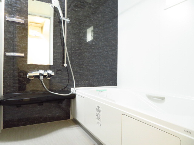 壁の色に変化をつけているので、明るさを保ちつつも落ち着いた印象の浴室です。