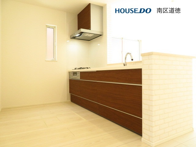 窓があり、暖かな陽が差し込みます。使い勝手の良い木目の美しいシステムキッチン。