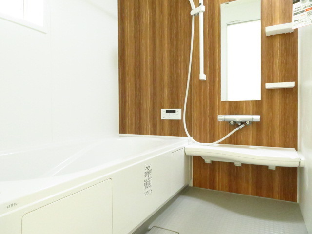 木目調の壁が落ち着いた印象を与えてくれる浴室です。