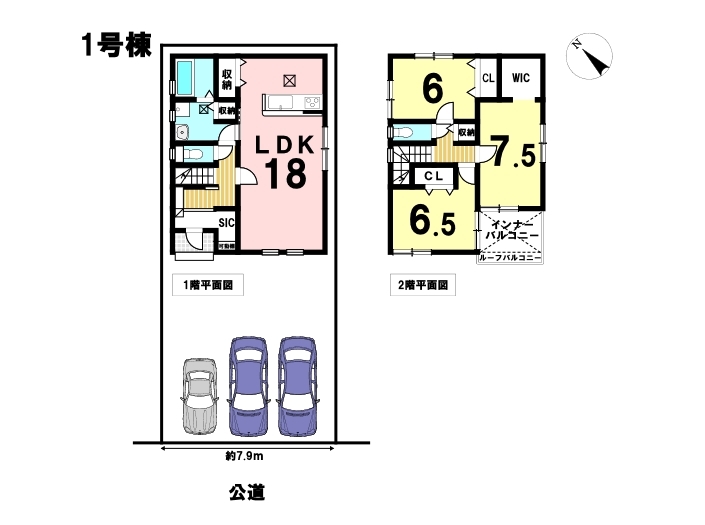 3LDKの間取り、駐車スペース3台分の敷地の広さ!