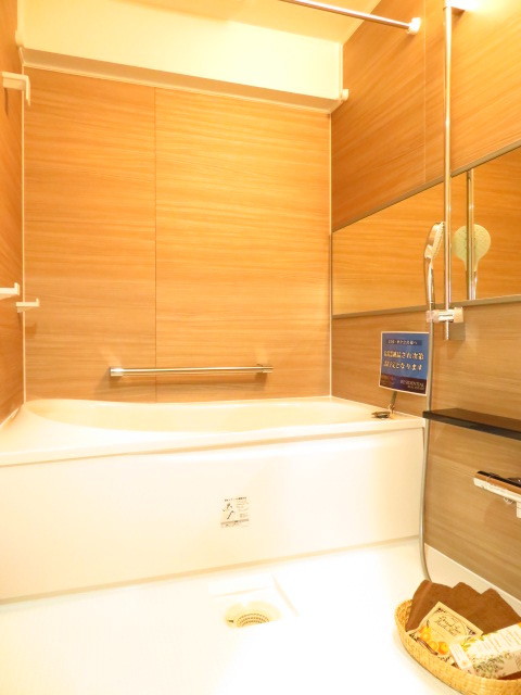 木目調の壁が落ち着いた印象を与えてくれる浴室です。