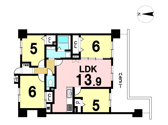 6帖南側洋室:リビング横の洋室は、多目的に使えて便利です。