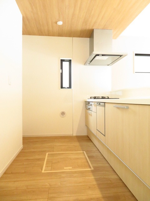 フローリングとキッチン上部にも木目のアクセントがあり、あたたかい空間でお料理もはかどりそうですね♪