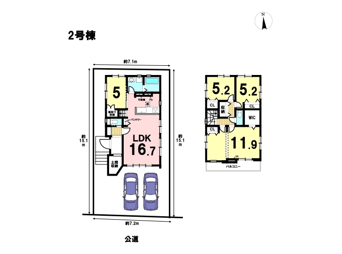 4LDKの間取り、駐車は2台可能。SICや廊下収納完備で、収納豊富な住まい♪