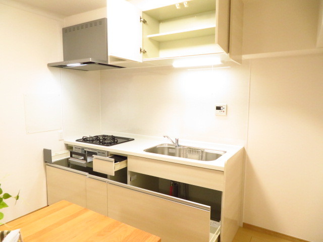 壁付けタイプのキッチンなので、集中して作業をすることができます。