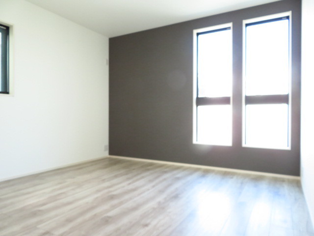 WIC付き7帖洋室:デザイン壁を用いたオシャレなお部屋です。2連の窓から陽射しが差し込み明るい室内です。