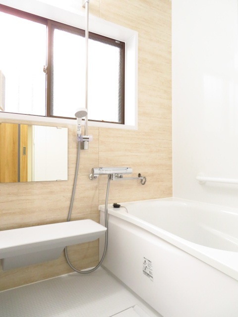 明るい木目調の浴室で一日の疲れも癒すことができます。