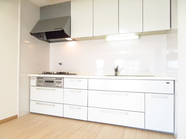 スッキリとした印象を与えてくれるシステムキッチン♪料理を覚えたてのお子様と一緒にお料理を楽しむのも素敵ですね♪