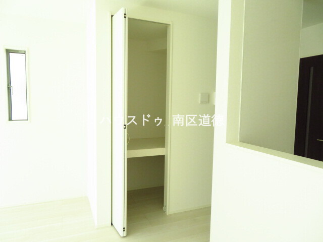 キッチン横には収納スペースがあり、ストック品などたくさん収納可能◎
