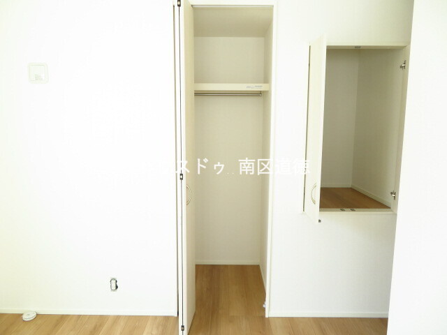 7.1帖洋室:ハンガーパイプ付きのクローゼットと、