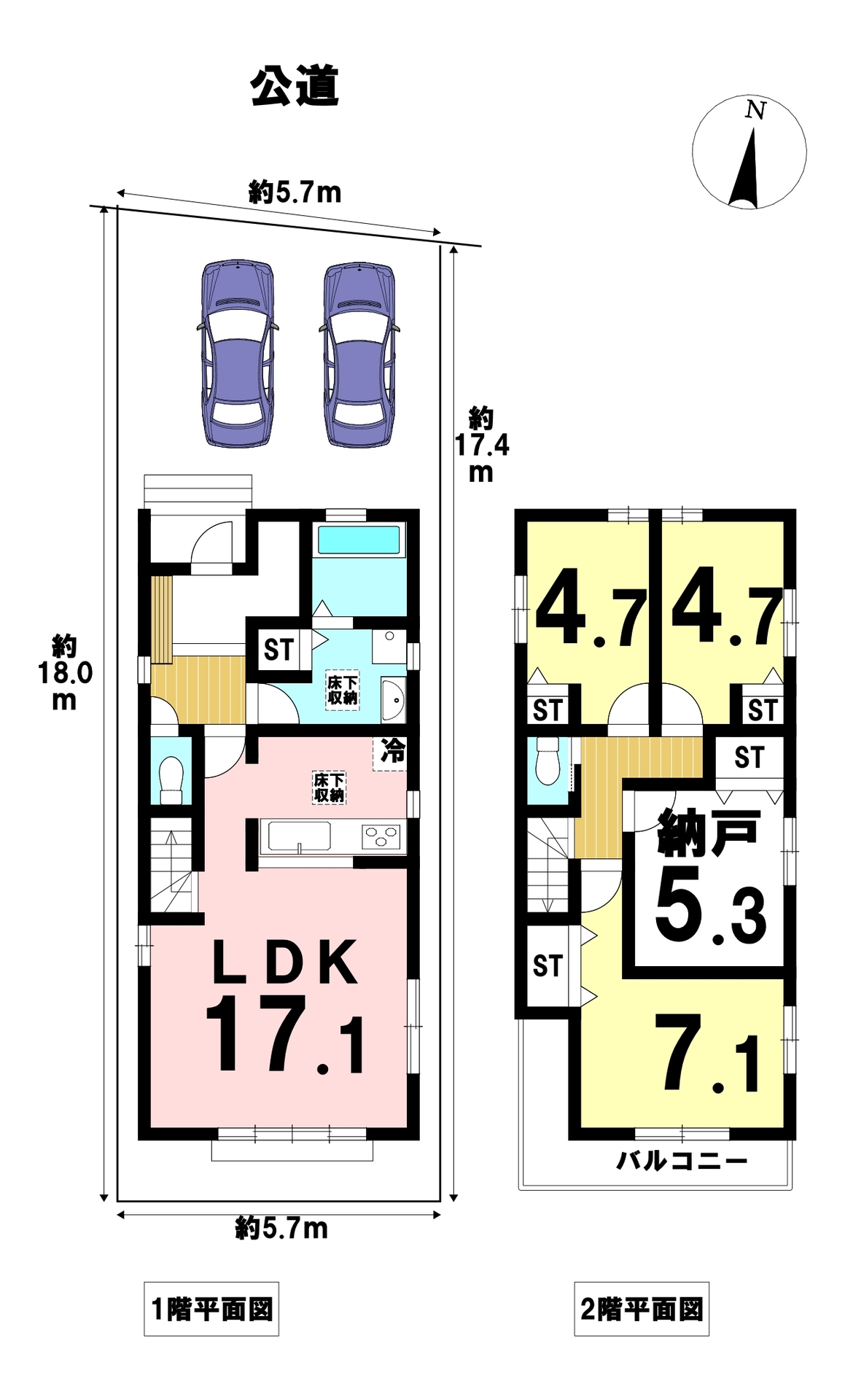 3LDK+S(納戸)の間取り、駐車は2台可能。