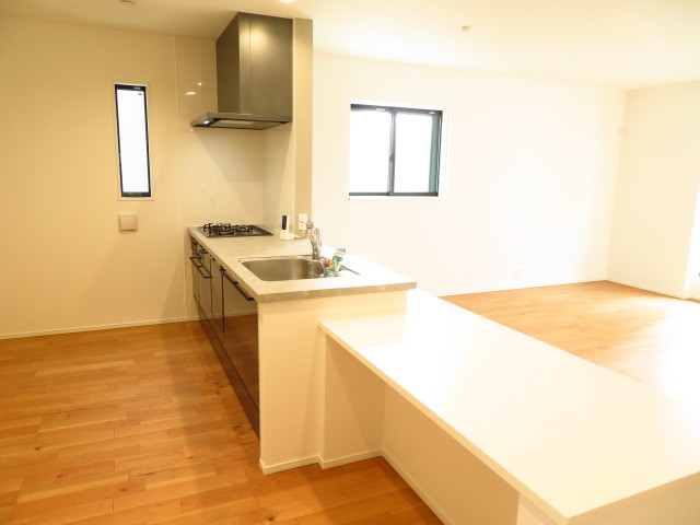 広々キッチンスペース!キッチン側のカウンター下にも空間があるので、置き場に困りがちな、分別できるゴミ箱置き場にするのも良いですね◎