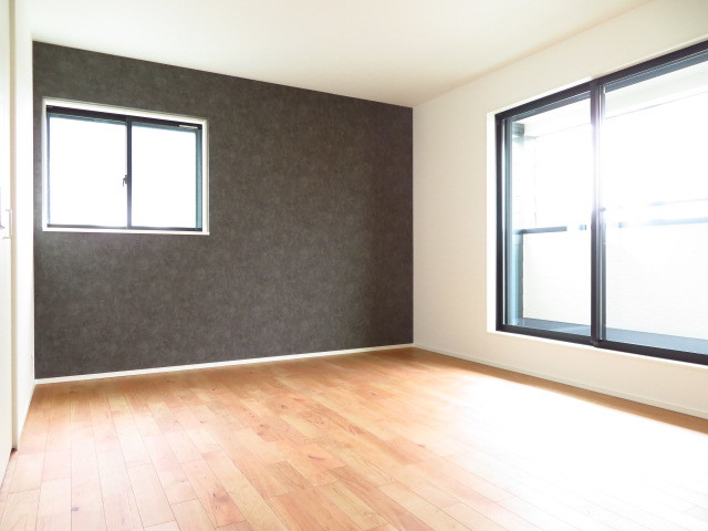 3階8.4帖洋室:バルコニー付きの一番大きな洋室です。東面はシックな色合いの壁紙で、お部屋に落ち着いた印象を与えてくれます。