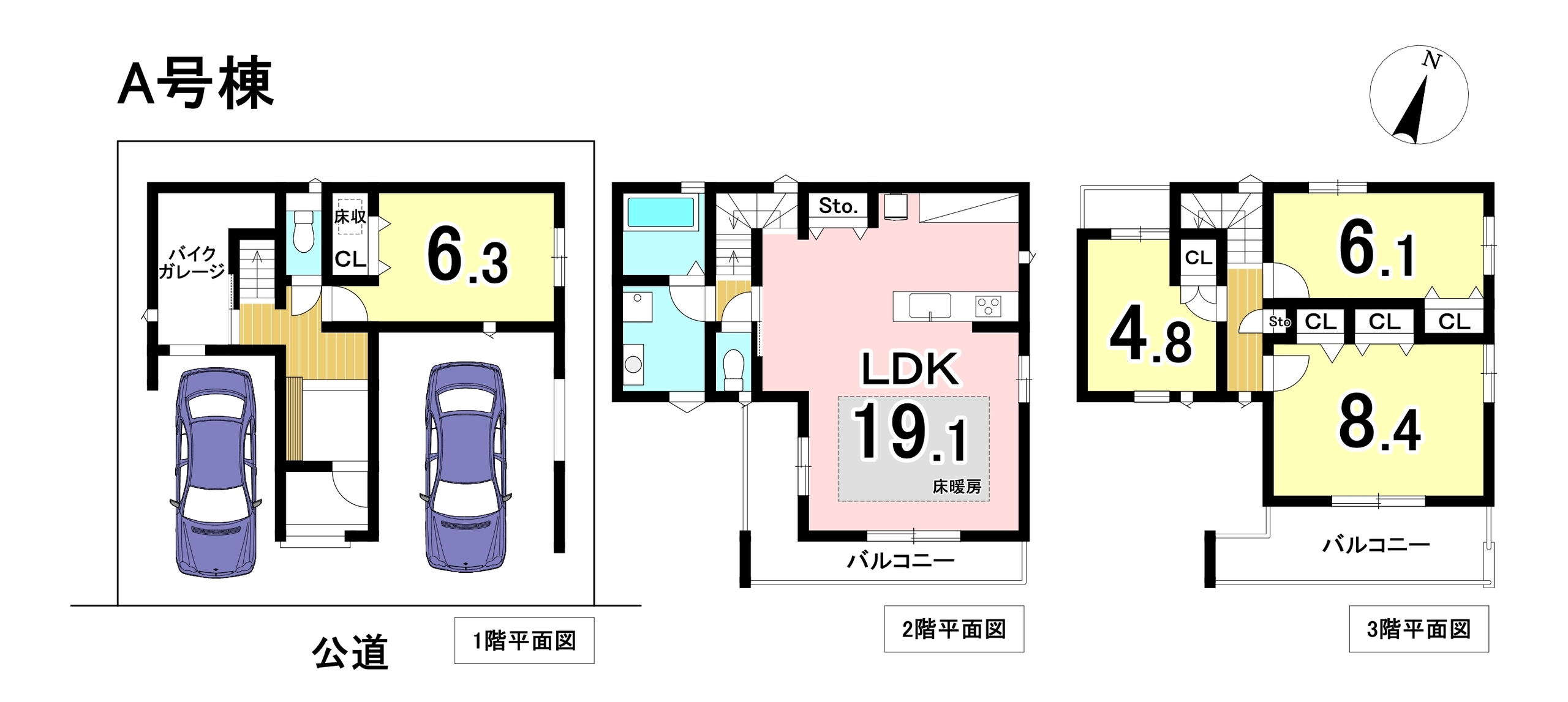 2階リビングに床暖房搭載!4LDKの間取り、駐車は2台可能なビルトインガレージの住まいです♪