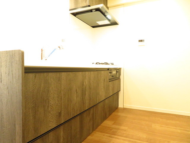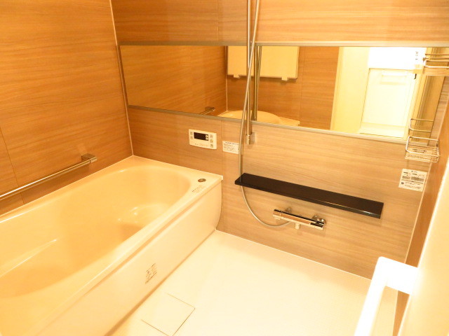 全面が木目調で、明るさを保ちつつも落ち着いた印象の浴室です。