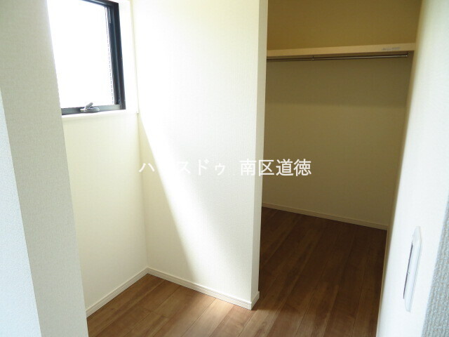 WIC付き8帖洋室:窓が付いて明るく換気もできるウォークインクローゼット。