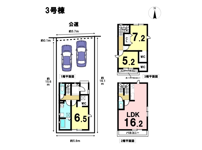 3LDKの間取り、駐車は2台可能な3階建ての住まい♪