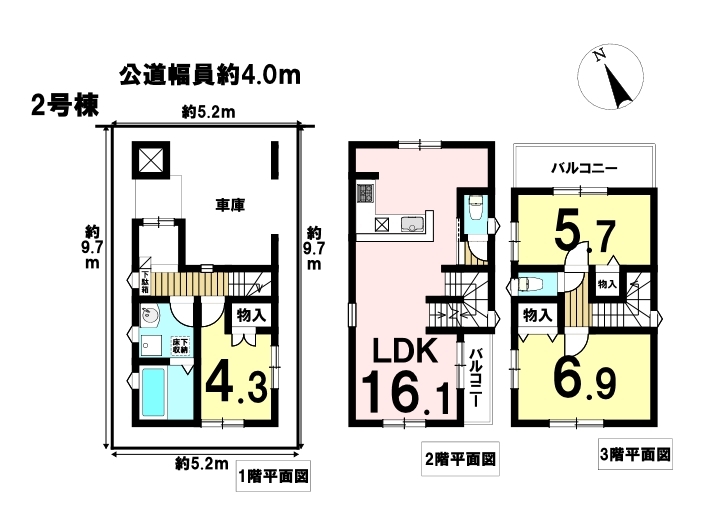 2LDK+S(納戸)の間取り、ビルトインガレージの3階建てのお家が建ちます。