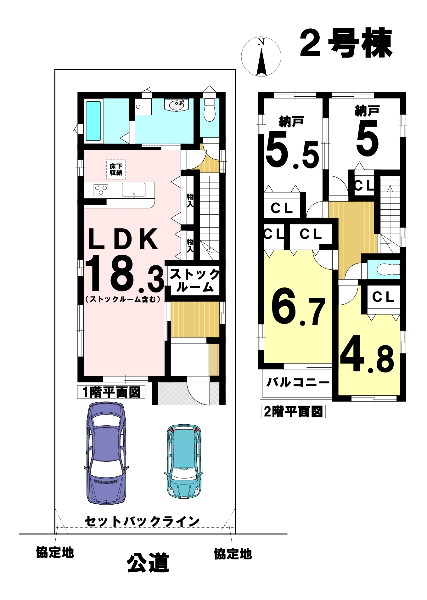 2LDK+2S(納戸)の間取り、駐車は2台可能です。