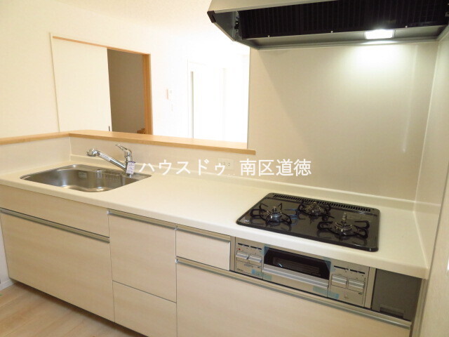 機能的なワークスペースを実現した対面式キッチン。料理をしながらリビングがしっかり見渡せます。