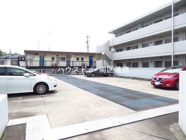 マンション北側にある平面駐車場の写真です。